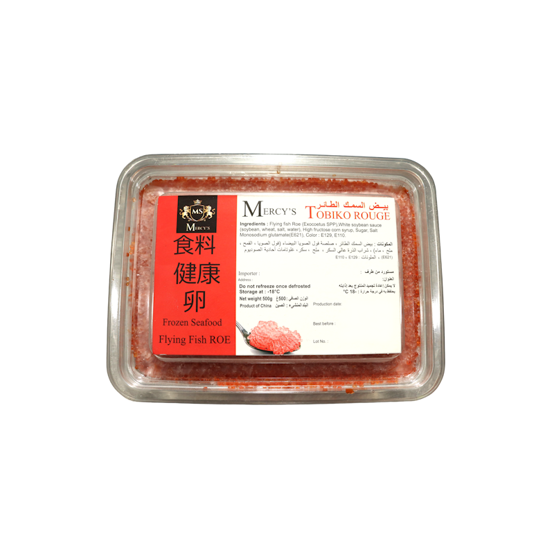 œufs TOBIKKO rouge Calibres: 1 Emballage: 10kg (20x500g) Nom scientifique: Cheilopogon Atrisignis Origine: Chine Stockage: Congelée Présentation: œufs Traitement: Crues